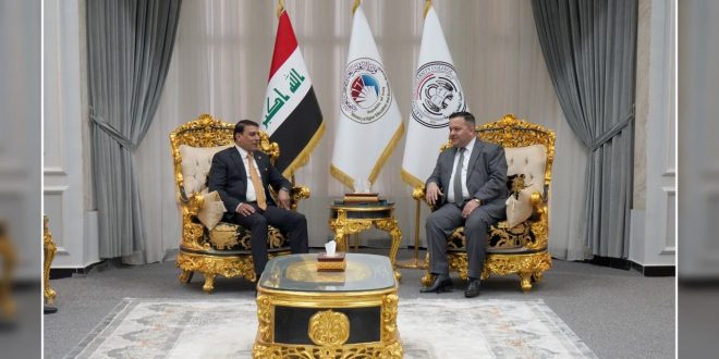 استقبل عميد كلية الكنوز الجامعة أ.م.د أسامة ناظم العبادي عضو مجلس محافظة البصرة حسن شداد الفارس في مكتبه .